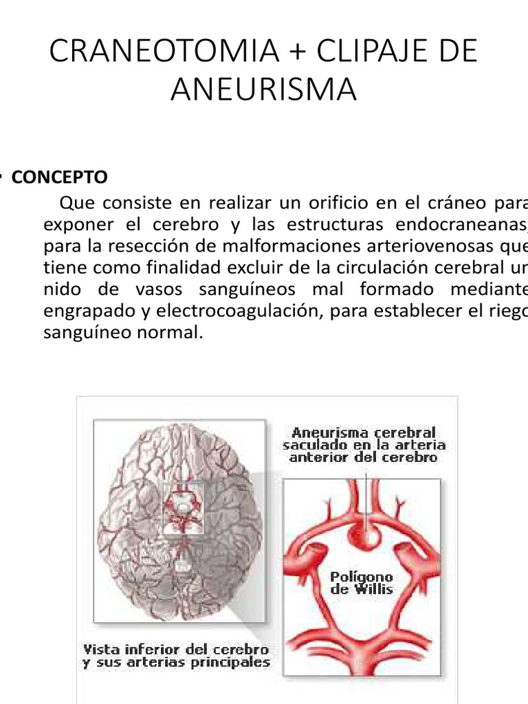 Craneotomia Clipaje De Aneurisma Pdf Craneo Especialidades Medicas